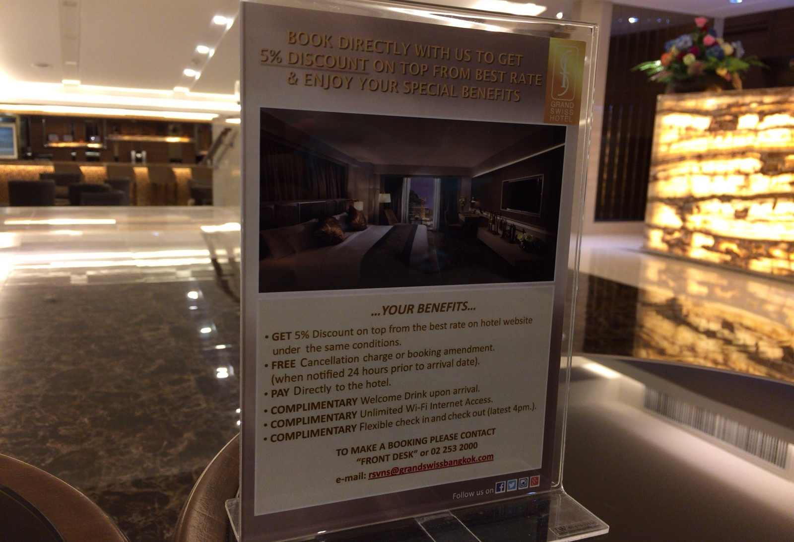 バンコクの中心地でこのホテルよりも安いホテルは沢山あります。安い中でも、セキュリティーや清潔感を選ぶと少し割高になってきます。このグランドスイスホテルは、日本で言うと東横インくらいの価格帯ですが、タイの物価からすると高めのホテルに位置すると思います。利便性の良い立地で、BTSの駅が近いので疲れなくていい。朝食はビュッフェスタイルで好きなだけ食べれます。ホテルの部屋からみえるバンコクの本当の姿?はなぜか良い感じがします。