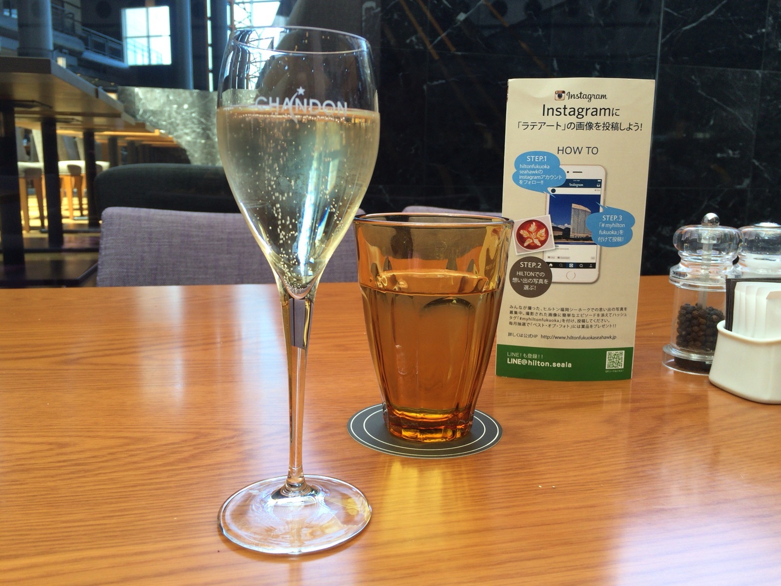 ウェルカムドリンク的なやつですね。このラウンジではアルコールはないので、帰りにホテルのダイニングで使わせていただきました。